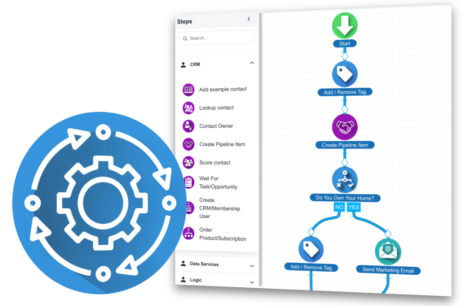 Every business needs a "Flow." It's how you turn website visitors into leads, and then into happy, paying customers. Repeat customers. We have 14 services all connected by drag & drop automated Flows to help you: