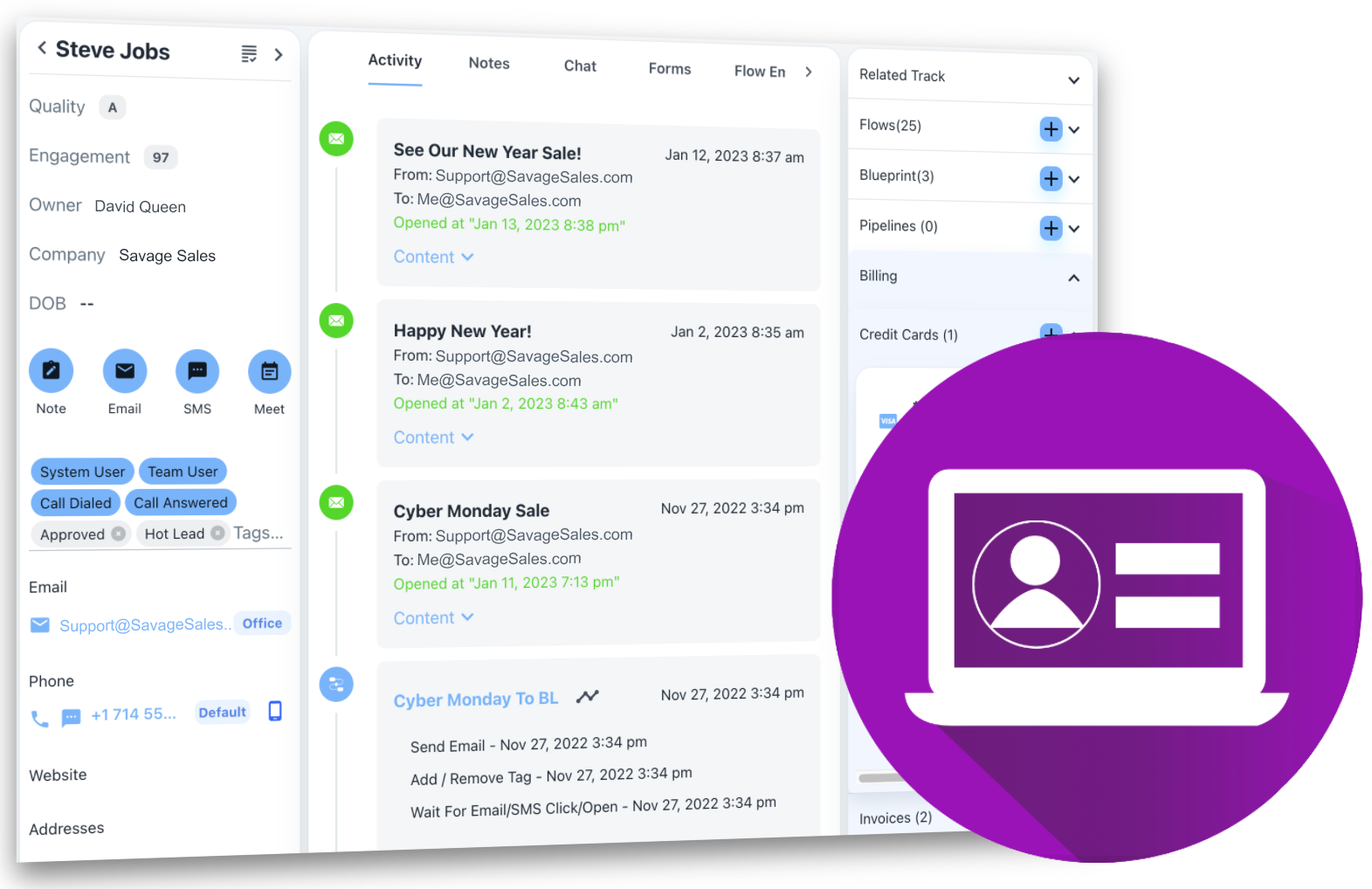 14+ POWERFUL integrated services come to life in this all-in-one software suite! Flexibility at your finger tips to help you grow your business with the Savage Sales CRM.